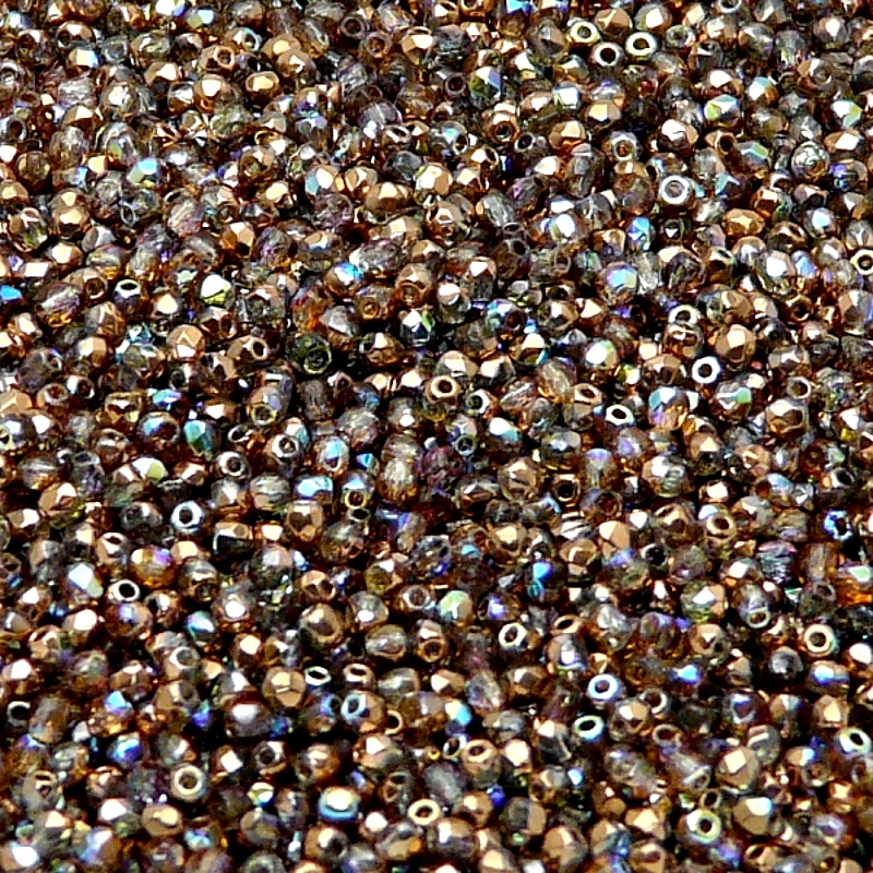 100ks České skleněné broušené ohňovky kulička 2mm čirá/ měděná duha