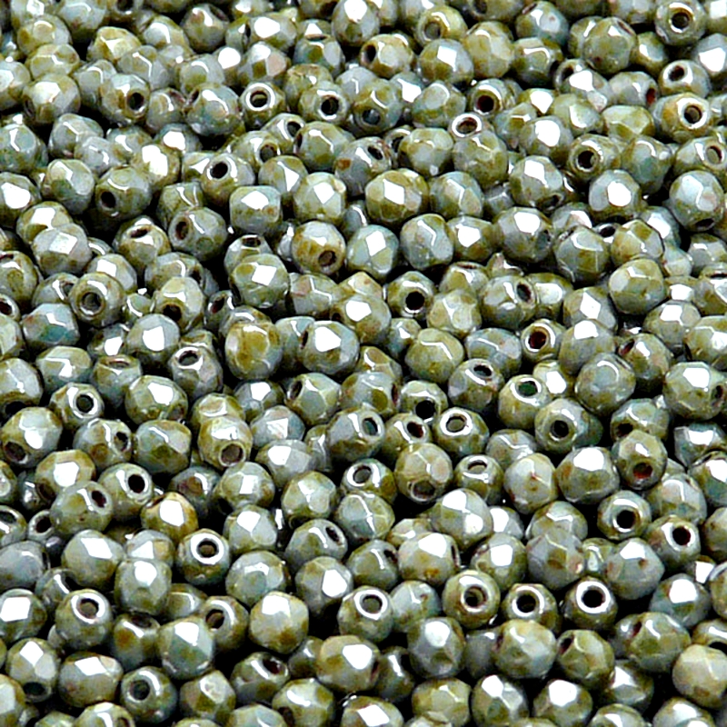 100ks České skleněné broušené ohňovky kulička 3mm bílá/ modrá lazura s listrem