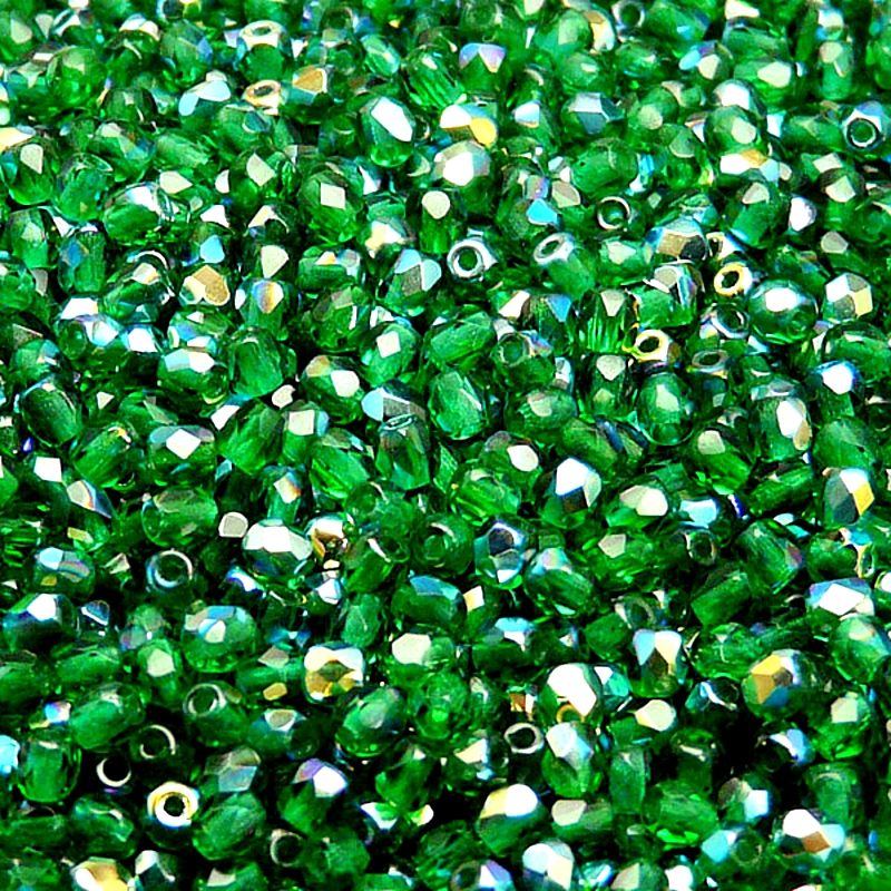 100ks České skleněné broušené ohňovky kulička 3mm chrysolit/ AB polopokovSkladem 19 ks47 Kč/ ks38,84 Kč bez DPH