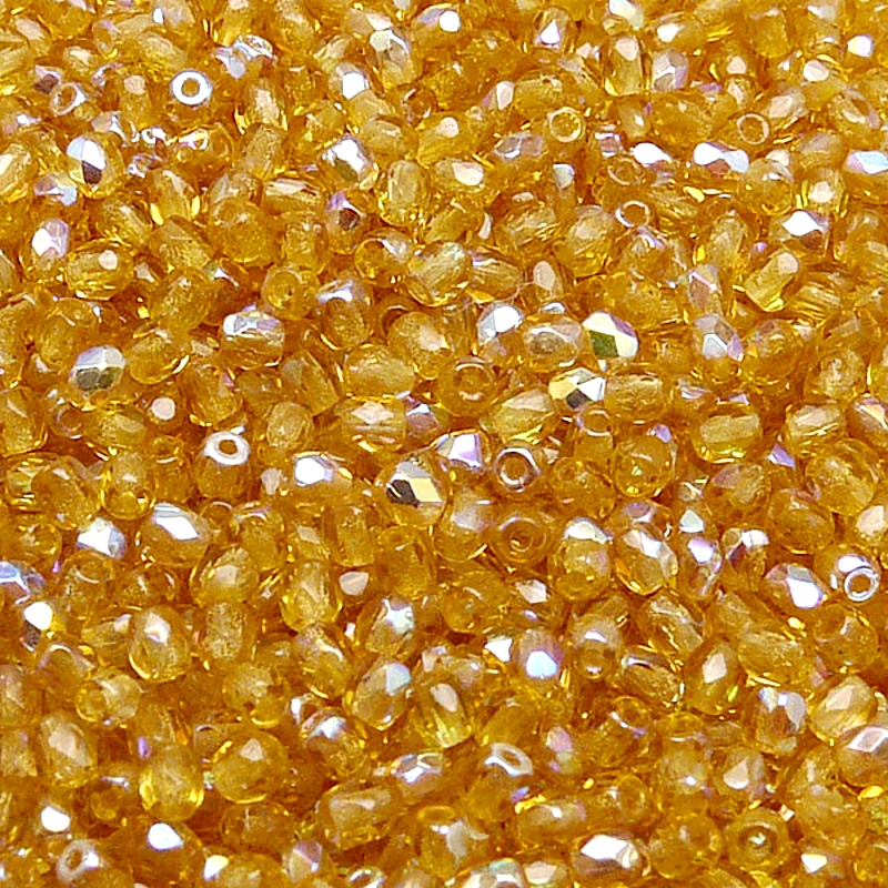 100ks České skleněné broušené ohňovky kulička 3mm topas/ AB polopokovSkladem 16 ks47 Kč/ ks38,84 Kč bez DPH