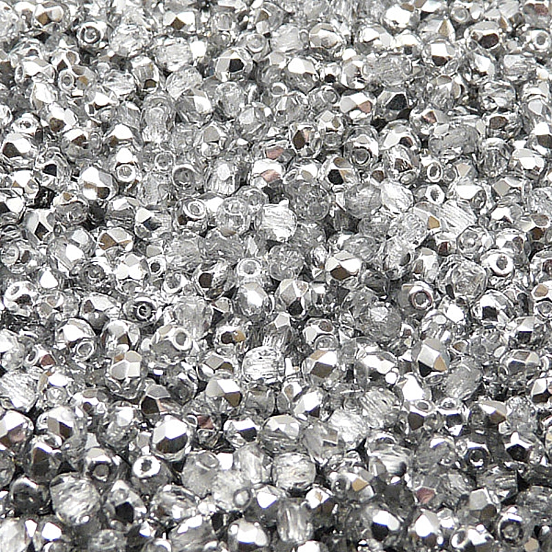 100ks České skleněné broušené ohňovky kulička 3mm čirá/ hliník polopokov