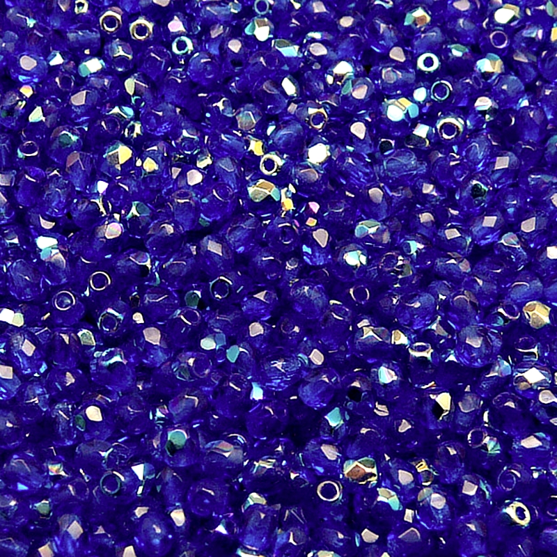 100ks České skleněné broušené ohňovky kulička 3mm modrý kobalt/ AB polopokov