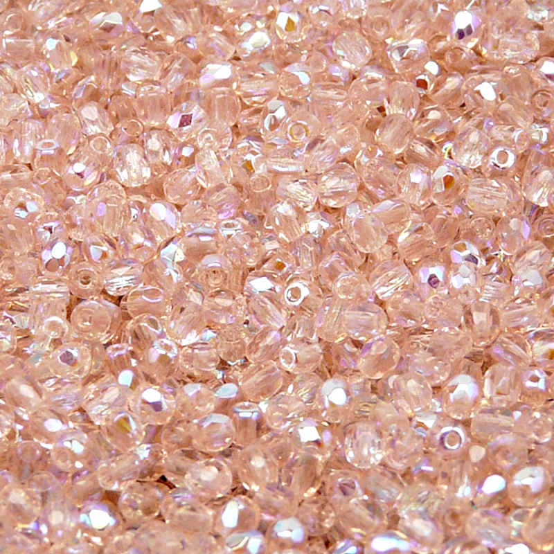 - 100ks České skleněné broušené ohňovky kulička 3mm rozalín/ AB polopokov