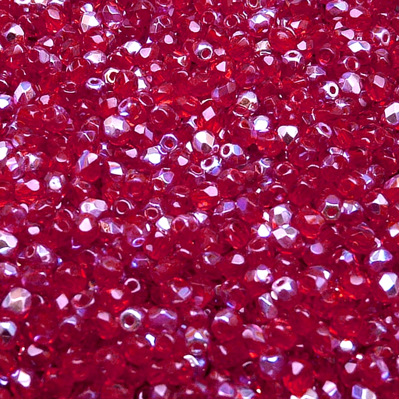 100ks České skleněné broušené ohňovky kulička 3mm rubín/ AB polopokovSkladem 30 ks53 Kč/ ks43,80 Kč bez DPH