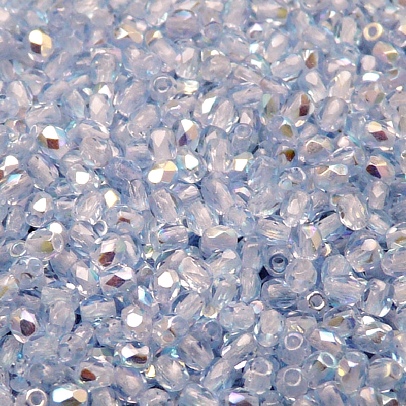 100ks České skleněné broušené ohňovky kulička 3mm světlý safír/ AB polopokovSkladem 29 ks47 Kč/ ks38,84 Kč bez DPH