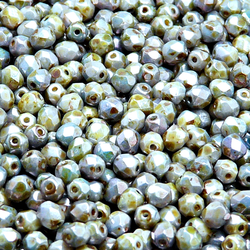 100ks České skleněné broušené ohňovky kulička 4mm bílá/ modrá lazura s listrem