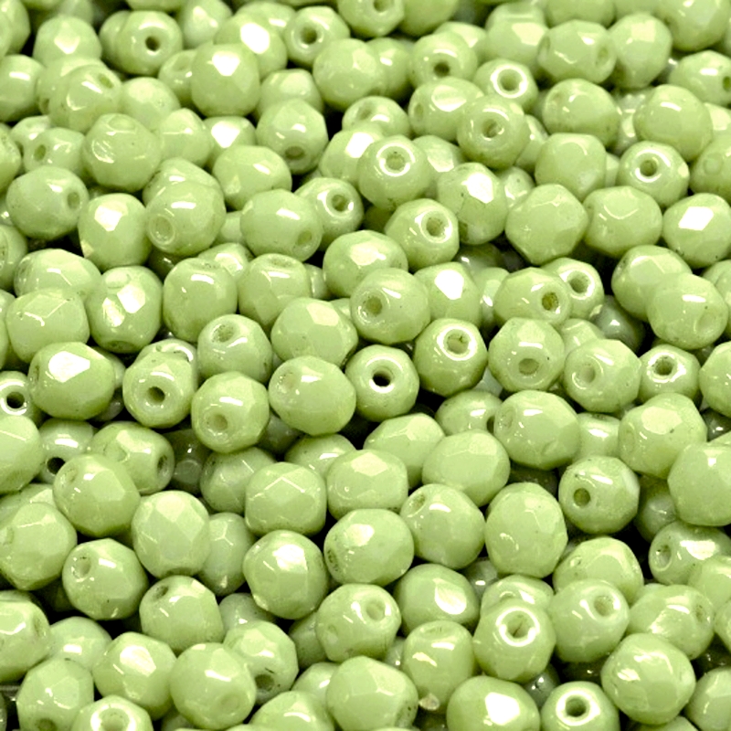 - 100ks České skleněné broušené ohňovky kulička 4mm bílá/ světle zelený listr
