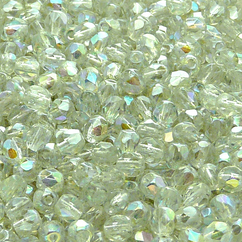 100ks České skleněné broušené ohňovky kulička 4mm čirá/ zelená duha