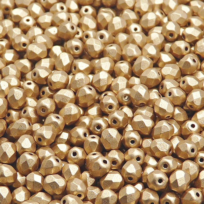 100ks České skleněné broušené ohňovky kulička 4mm čirá/ bronz světle zlatý matný