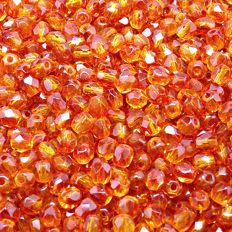 - 100ks České skleněné broušené ohňovky kulička 4mm čirá/ červeno-žlutý dvoubarevný stříkaný dekor