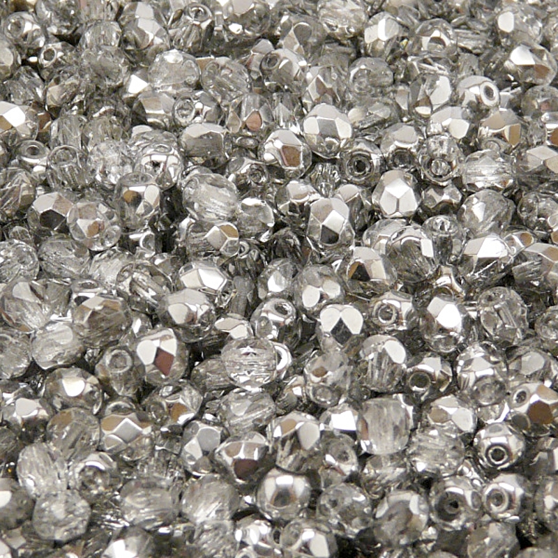 100ks České skleněné broušené ohňovky kulička 4mm čirá/ hliník polopokovSkladem 20 ks42 Kč/ ks34,71 Kč bez DPH