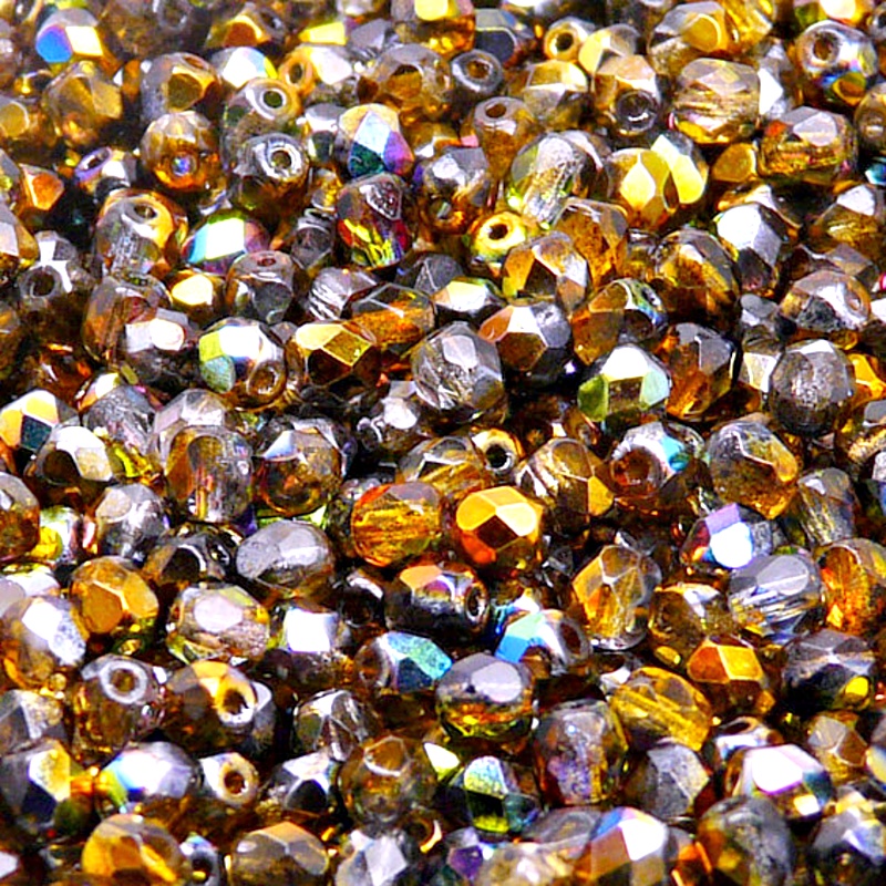 100ks České skleněné broušené ohňovky kulička 4mm čirá/ oranžovo šedý magicSkladem 20 ks76 Kč/ ks62,81 Kč bez DPH