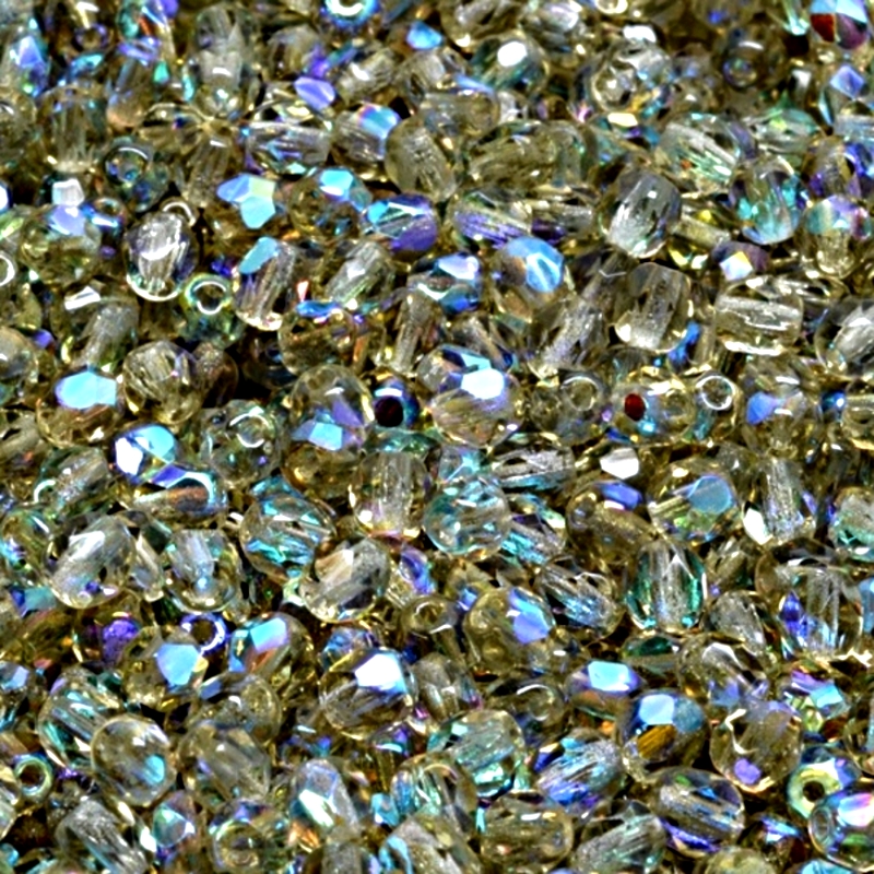 100ks České skleněné broušené ohňovky kulička 4mm kouřová šedá/ AB polopokovSkladem 29 ks51 Kč/ ks42,15 Kč bez DPH