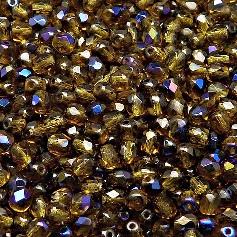 100ks České skleněné broušené ohňovky kulička 4mm kouřový topas/ azuro polopokovSkladem 20 ks51 Kč/ ks42,15 Kč bez DPH