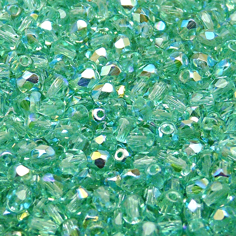 100ks České skleněné broušené ohňovky kulička 4mm světle zelená akva/ AB polopokovSkladem 30 ks51 Kč/ ks42,15 Kč bez DPH