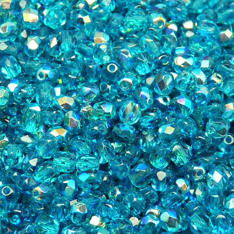 100ks České skleněné broušené ohňovky kulička 4mm zelená akva/ AB polopokovSkladem 30 ks51 Kč/ ks42,15 Kč bez DPH
