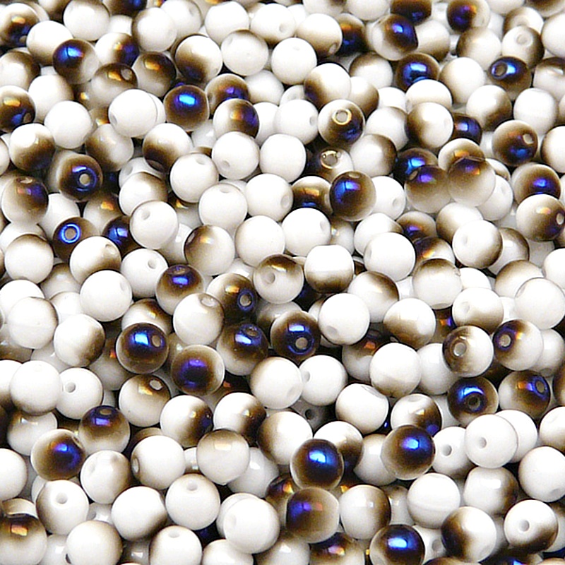 100ks České skleněné mačkané korálky kulička 4mm bílá/ azuro polopokovSkladem 28 ks32 Kč/ ks26,45 Kč bez DPH