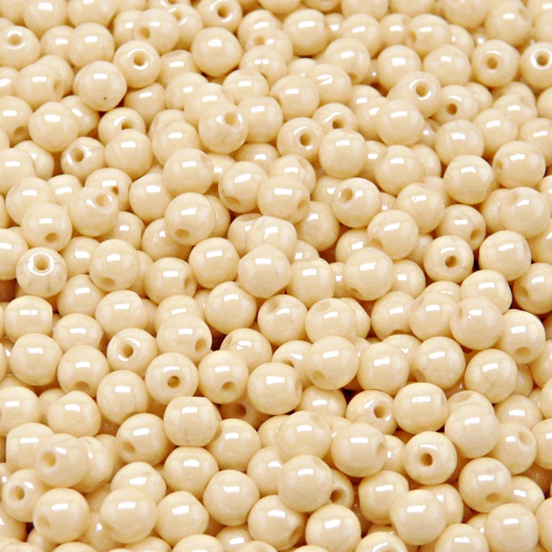 100ks České skleněné mačkané korálky kulička 4mm bílá/ béžový listrSkladem 8 ks34 Kč/ ks28,10 Kč bez DPH