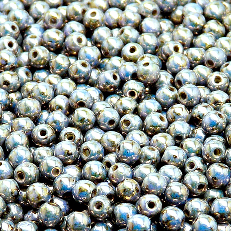 100ks České skleněné mačkané korálky kulička 4mm bílá/ modrá lazura s listremSkladem 29 ks36 Kč/ ks29,75 Kč bez DPH