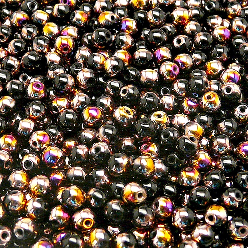 100ks České skleněné mačkané korálky kulička 4mm černá/ sliperit polopokovSkladem 30 ks30 Kč/ ks24,79 Kč bez DPH
