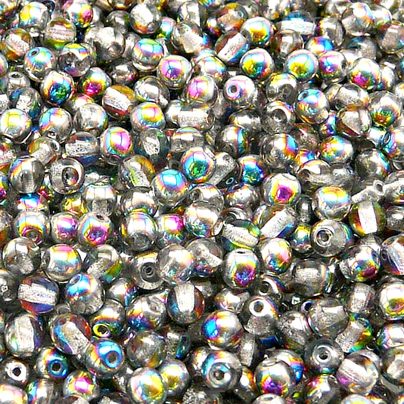 100ks České skleněné mačkané korálky kulička 4mm čirá/ vitrail polopokovSkladem 26 ks30 Kč/ ks24,79 Kč bez DPH