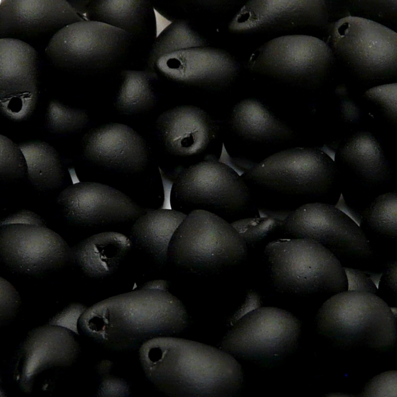 10ks České skleněné mačkané korálky kapky 10x14mm černá mat