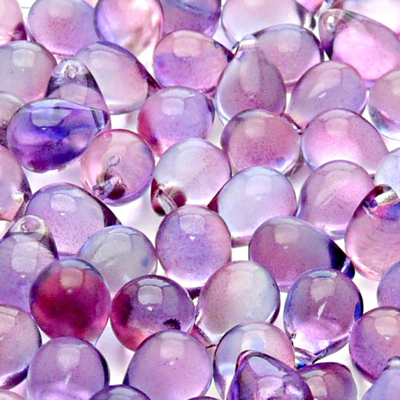 10ks České skleněné mačkané korálky kapky 10x14mm čirá/ červeno-fialový dvoubarevný stříkaný dekorNení skladem64 Kč/ ks52,89 Kč bez DPH