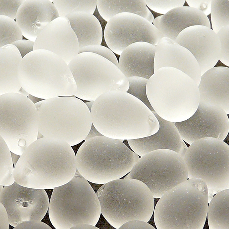 - 10ks České skleněné mačkané korálky kapky 10x14mm čirá mat