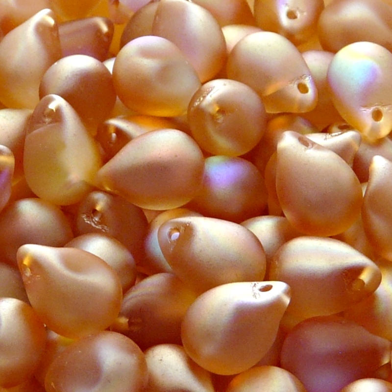 10ks České skleněné mačkané korálky kapky 10x14mm čirá/ oranžová duha matSkladem 5 ks60 Kč/ ks49,59 Kč bez DPH