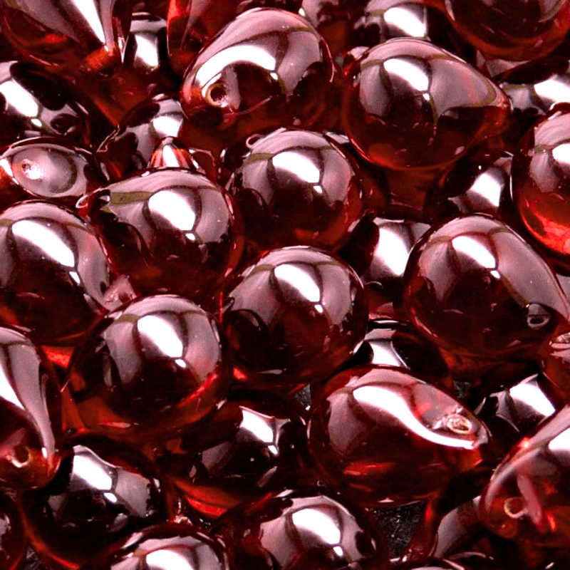 - 10ks České skleněné mačkané korálky kapky 10x14mm granát