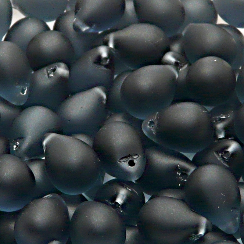 - 10ks České skleněné mačkané korálky kapky 10x14mm montán safír mat