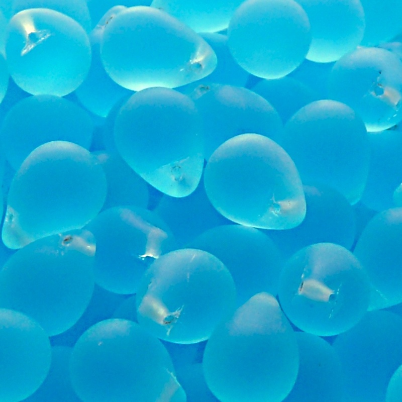 10ks České skleněné mačkané korálky kapky 10x14mm světlá akva mat