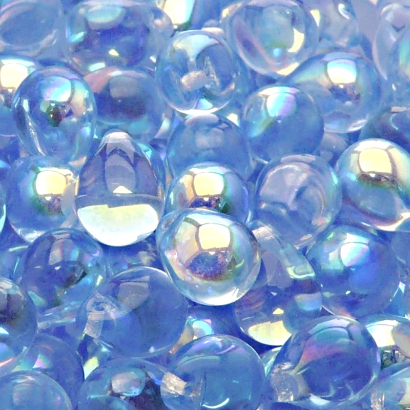 10ks České skleněné mačkané korálky kapky 10x14mm světlý safír/ AB polopokov