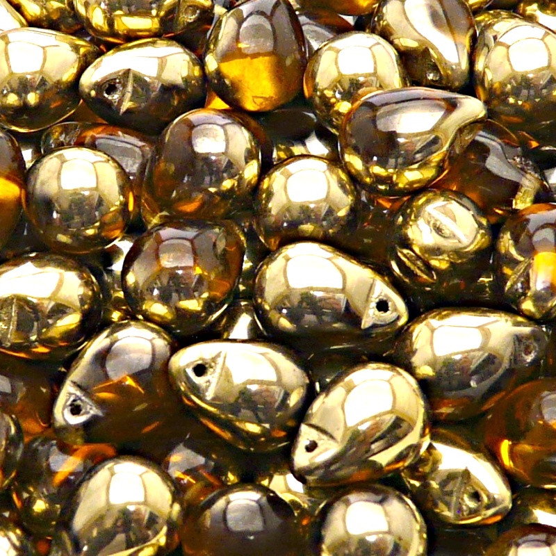 10ks České skleněné mačkané korálky kapky 10x14mm topas/ zlato polopokovSkladem 12 ks58 Kč/ ks47,93 Kč bez DPH