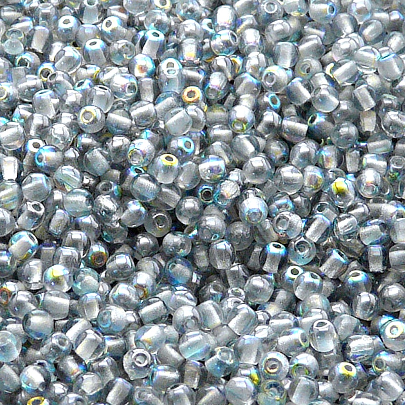 200ks České skleněné mačkané korálky kulička 3mm čirá/ modrá duha