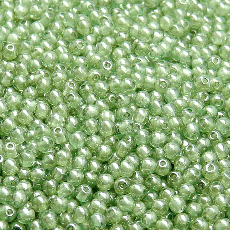 200ks České skleněné mačkané korálky kulička 3mm čirá/ světle zelený listr