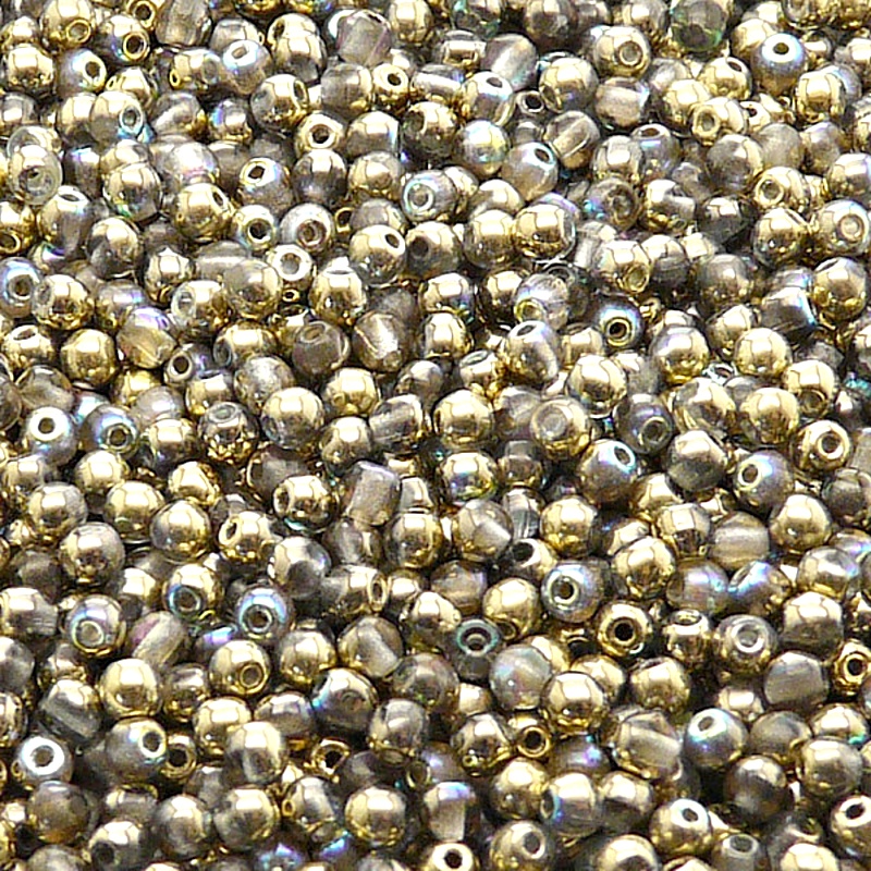 200ks České skleněné mačkané korálky kulička 3mm čirá/ zlatá duhaSkladem 2 ks40 Kč/ ks33,06 Kč bez DPH