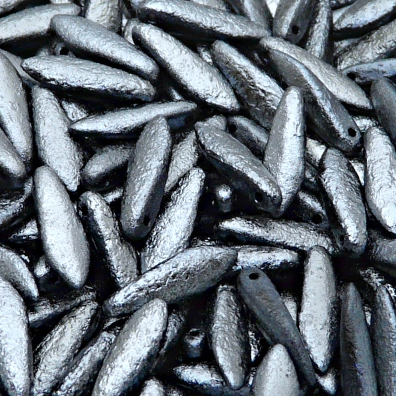 - 20ks České skleněné mačkané korálky jazýčky 5x16mm černá/ modrý hematit celopokov leptané