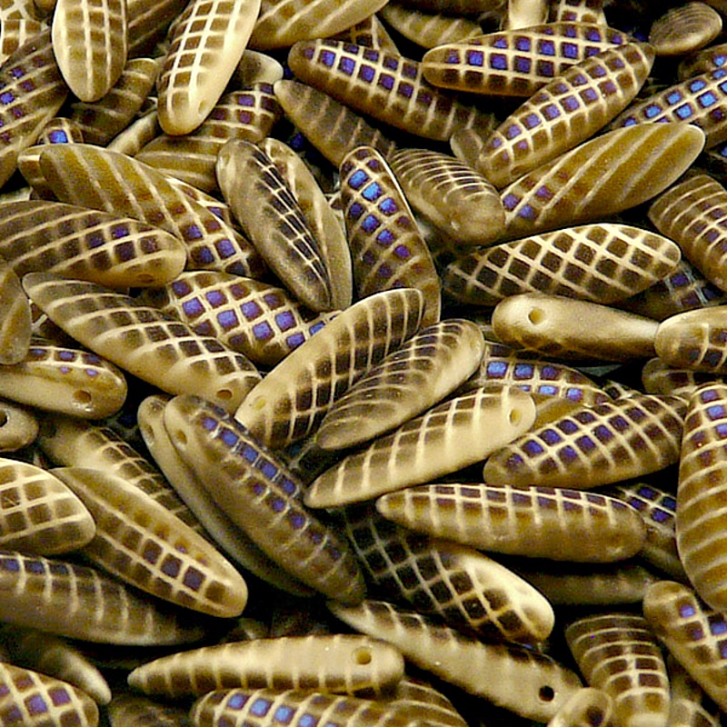 20ks České skleněné mačkané korálky jazýčky 5x16mm sytá béžová/ azuro malá mřížka mat oboustrannáSkladem 20 ks68 Kč/ ks56,20 Kč bez DPH