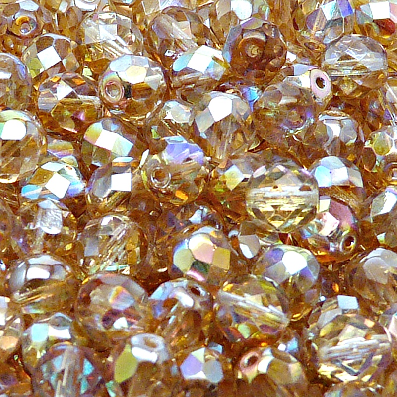 25ks České skleněné broušené ohňovky kulička 8mm čirá/ hnědá duhaSkladem 14 ks48 Kč/ ks39,67 Kč bez DPH
