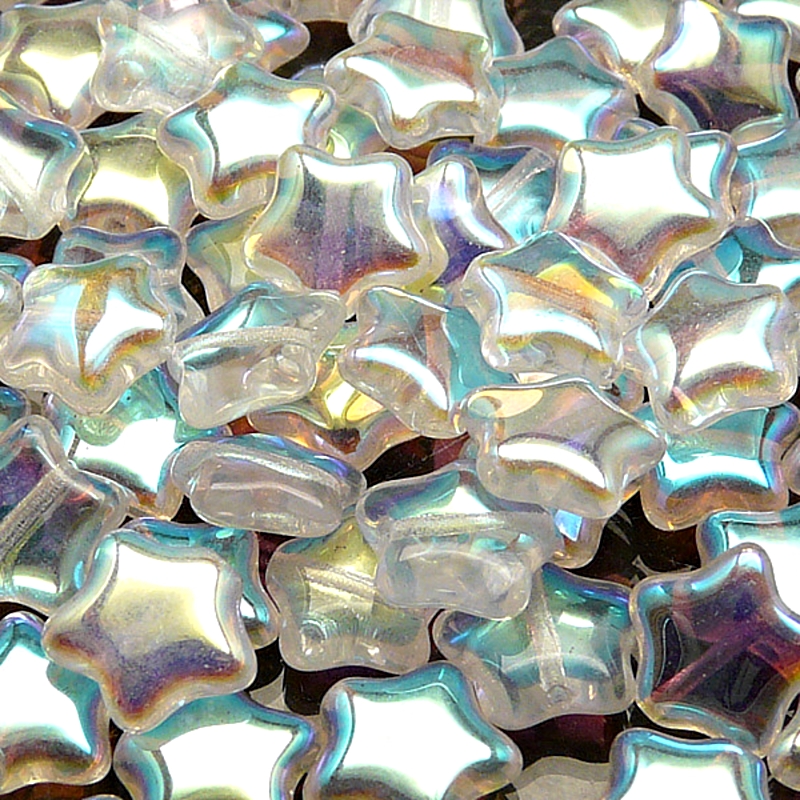 25ks České skleněné mačkané korálky hvězdička 12mm čirá/ AB polopokovSkladem 3 ks60 Kč/ ks49,59 Kč bez DPH