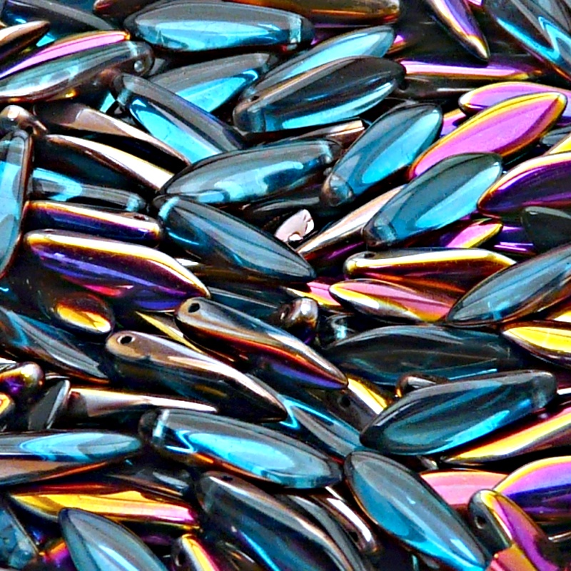 30ks České skleněné mačkané korálky jazýčky 5x16mm akva/ sliperit polopokovSkladem 9 ks42 Kč/ ks34,71 Kč bez DPH