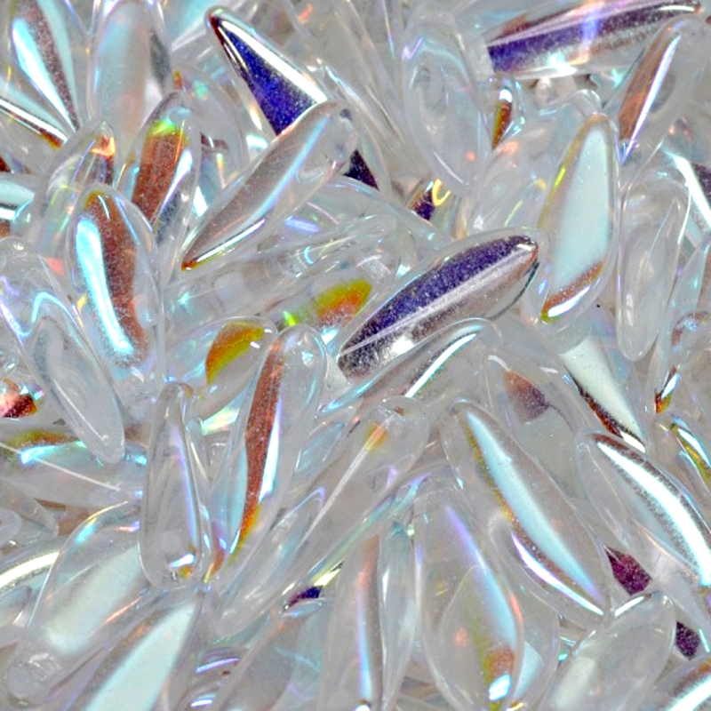30ks České skleněné mačkané korálky jazýčky 5x16mm čirá/ AB polopokovSkladem 1 ks40 Kč/ ks33,06 Kč bez DPH