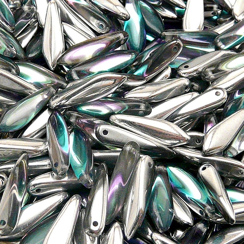 Celopokov tvoří vrstva kovu nanesená vakuově na celý povrch korálků.