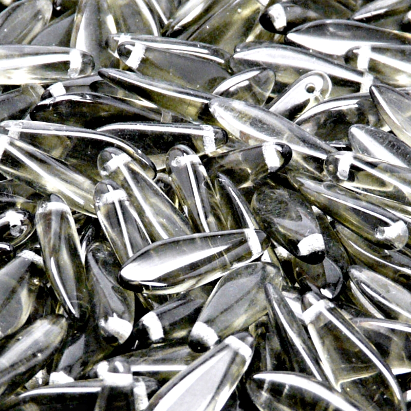 - 30ks České skleněné mačkané korálky jazýčky 5x16mm kouřová šedá