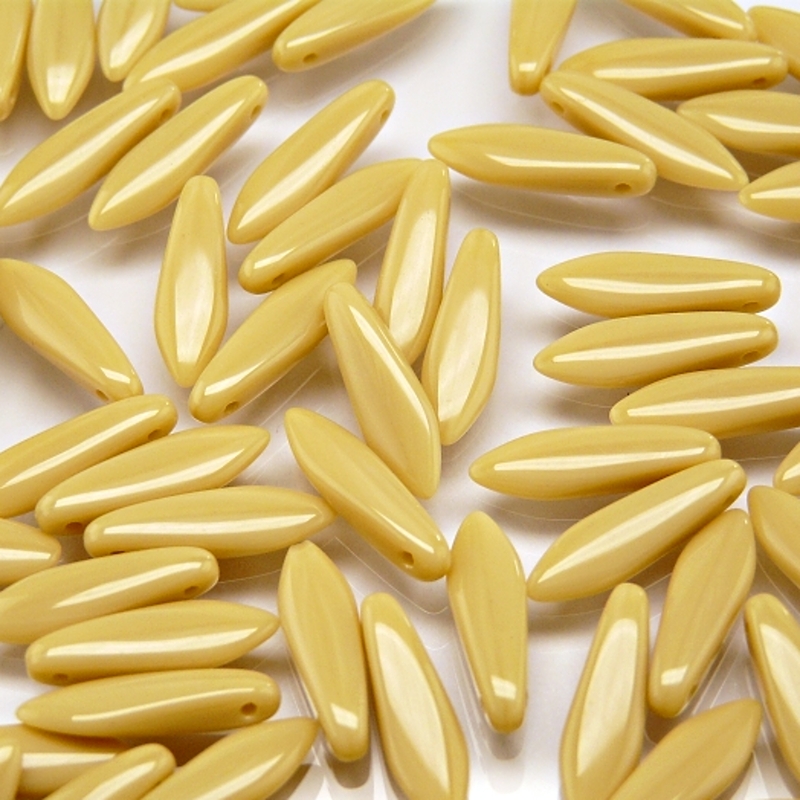 - 30ks České skleněné mačkané korálky jazýčky 5x16mm sytá béžová