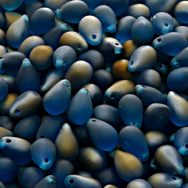 30ks České skleněné mačkané korálky kapky 6x9mm akva/ valentinit polopokov mat