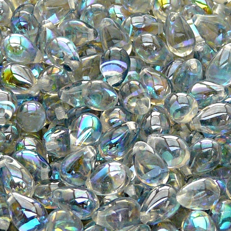 30ks České skleněné mačkané korálky kapky 6x9mm čirá/ modrá duhaSkladem 16 ks46 Kč/ ks38,02 Kč bez DPH