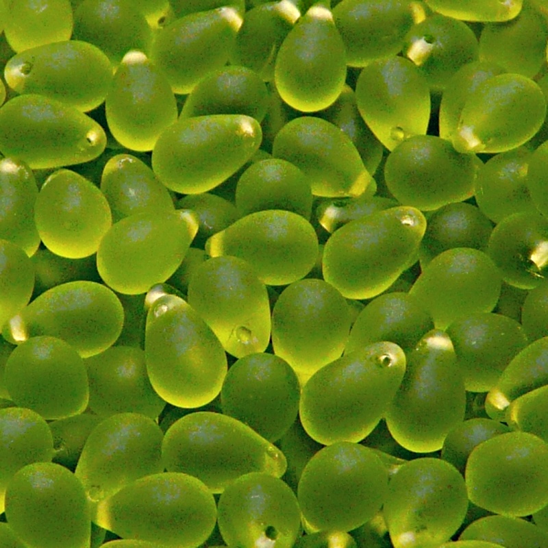 - 30ks České skleněné mačkané korálky kapky 6x9mm olivín mat
