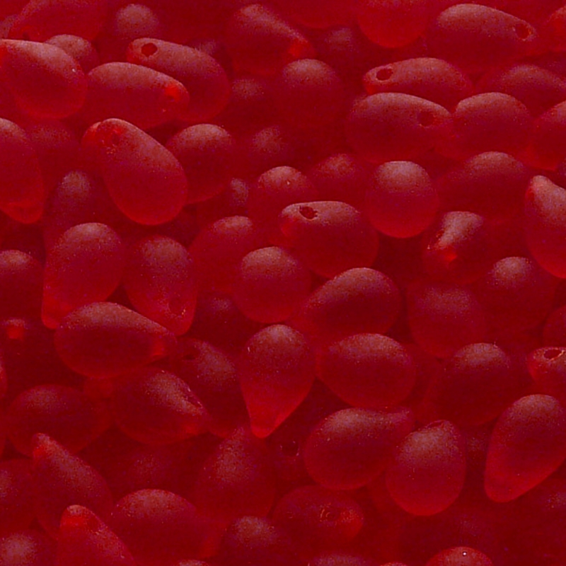 30ks České skleněné mačkané korálky kapky 6x9mm rubín mat